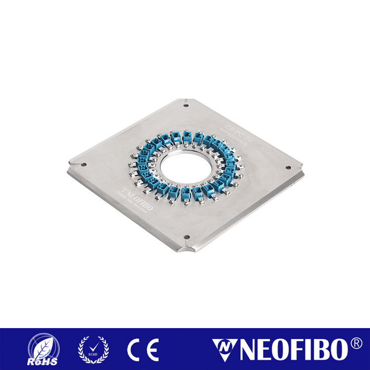 CS-PC-24成品研磨夹具专用于CS UPC成品连接器端面研磨的一款夹具,采用插拔装盘方式,装盘拆盘轻松不费力,一次可研磨24个成品连接头(48芯),研磨效果很好,此盘可选择PC或APC类型。