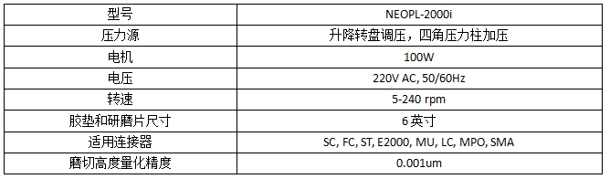 NEOPL-2000i新款光纤研磨机是基于智能四角加压研磨机改良优化的一款新型研磨机,内置软件和PLC控制系统,转盘含升降控制系统,加大6英寸可大大提升研磨效率。人性化的操作界面,研磨参数可自定义,研磨品质不再过度依赖操作人员的技术和经验。此研磨机最大的优势是可以有效保证MT插芯模切长度和研磨角度一致性,一次性可研磨36-42个MT插芯。