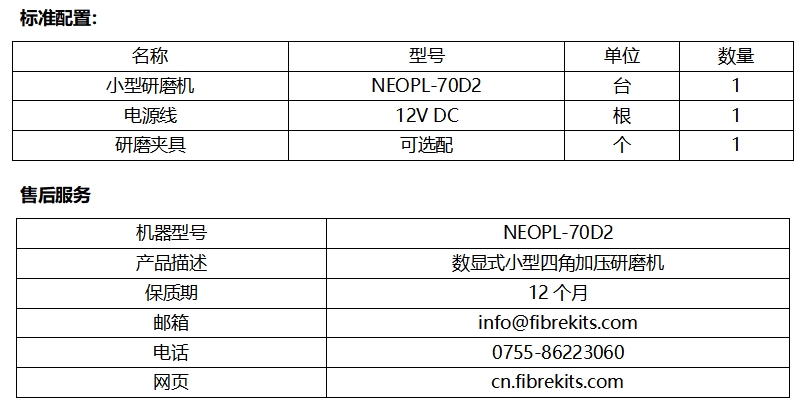 NEOPL-70D2 是一款带有数字显示的高性能高效率的光纤研磨设备,是实验室、移动作业、现场施工或户外作业的第一选择。它体积小,便于携带,采用四角加压,传动设计紧凑,运行更平稳。配备电源线和车载线,可定制蓄电电池.
