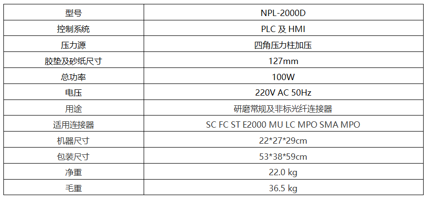 NPL-2000D研磨机是一款多功能智能四角加压研磨机,独特逆向而行的公转自转合成运动,提供高效稳定磨切力。其综合性能优于同类产品。本机适用于光纤跳线、光纤精密组件的端面研磨,可用于产品研发试产及可行性验证,批量研磨光纤制品。多组数据存储功能,提供经验传承式研磨参数管理,减少研磨成品率对技术经验的过度依赖。定制化研磨夹具,为研磨设备提供更多高效可靠的研磨方案。