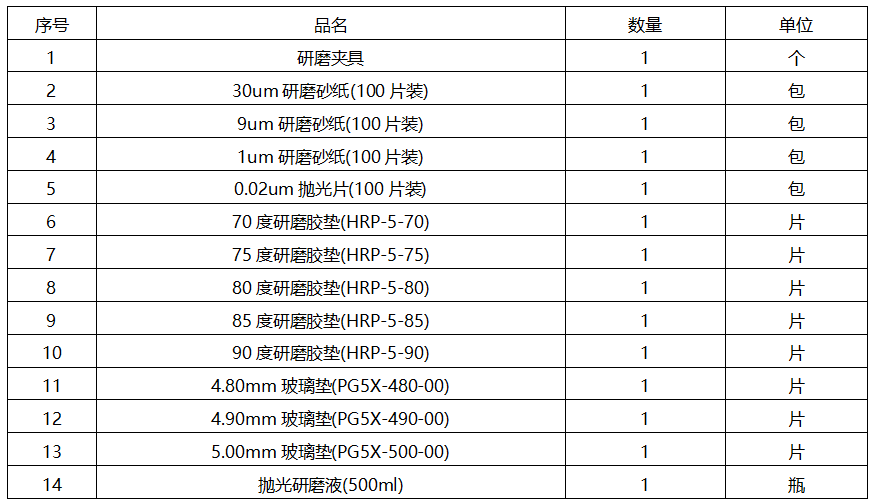 备注:研磨夹具型号繁多,请参考产品手册及官网产品信息;研磨耗材因研磨产品材质差异较大,请咨询我司销售人员。